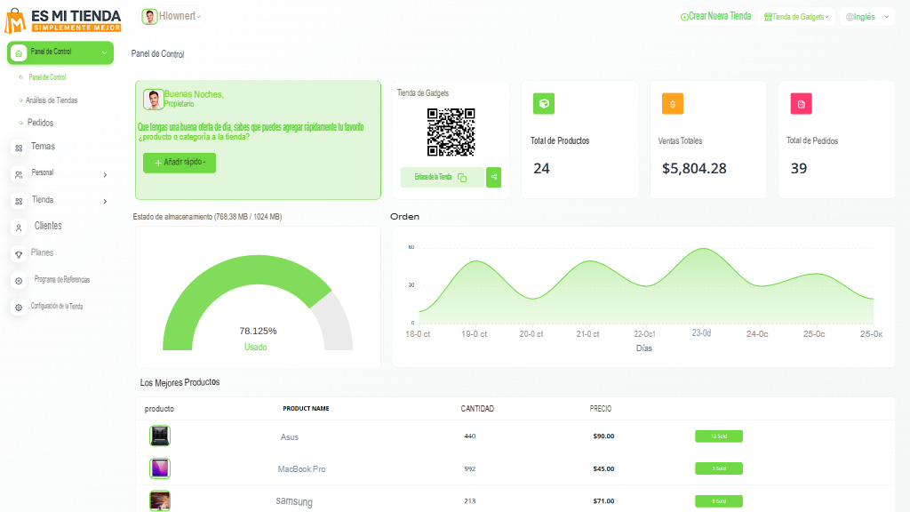 Gestiona productos, inventario, pedidos y clientes desde una plataforma intuitiva y moderna con más de 20 métodos de pago.